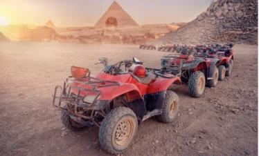 Enjoy a quad biking experience at the Giza Pyramids, riding in the desert with stunning pyramid views in a unique adventure.