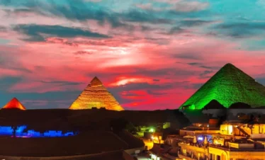 Watch the Pyramids Sound and Light Show, illuminated at night with a stunning audio-visual display, telling the story of the pharaohs and the Sphinx.