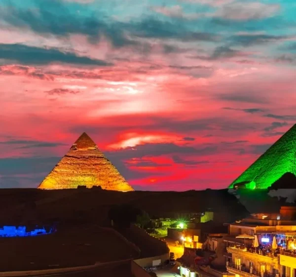 Enjoy a spectacular evening at the Giza Pyramids with the famous Sound and Light Show. Watch as the pyramids and the Great Sphinx are illuminated under the night sky, bringing the history of ancient Egypt to life through dramatic narration and stunning visual effects.